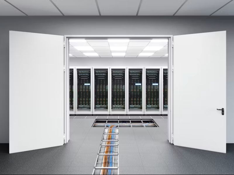 Certo. Le porte a battente o scorrevoli possono essere motorizzate e integrate con sensori o sistemi di controllo accessi.