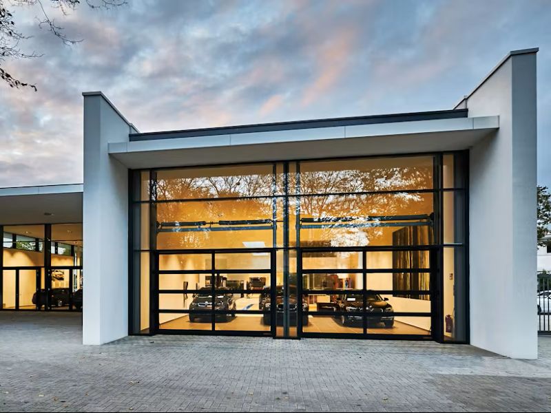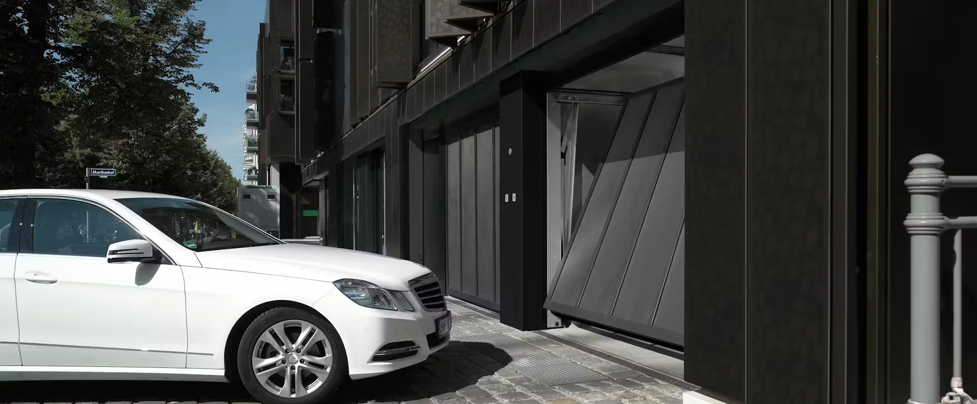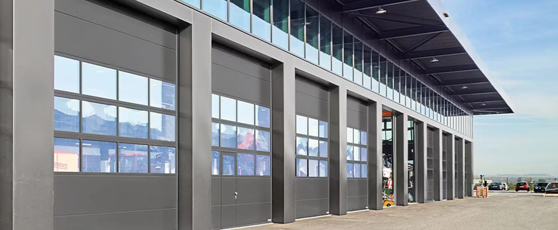 I portoni a libro o sezionali sono ideali per aperture ampie e frequente passaggio di mezzi.