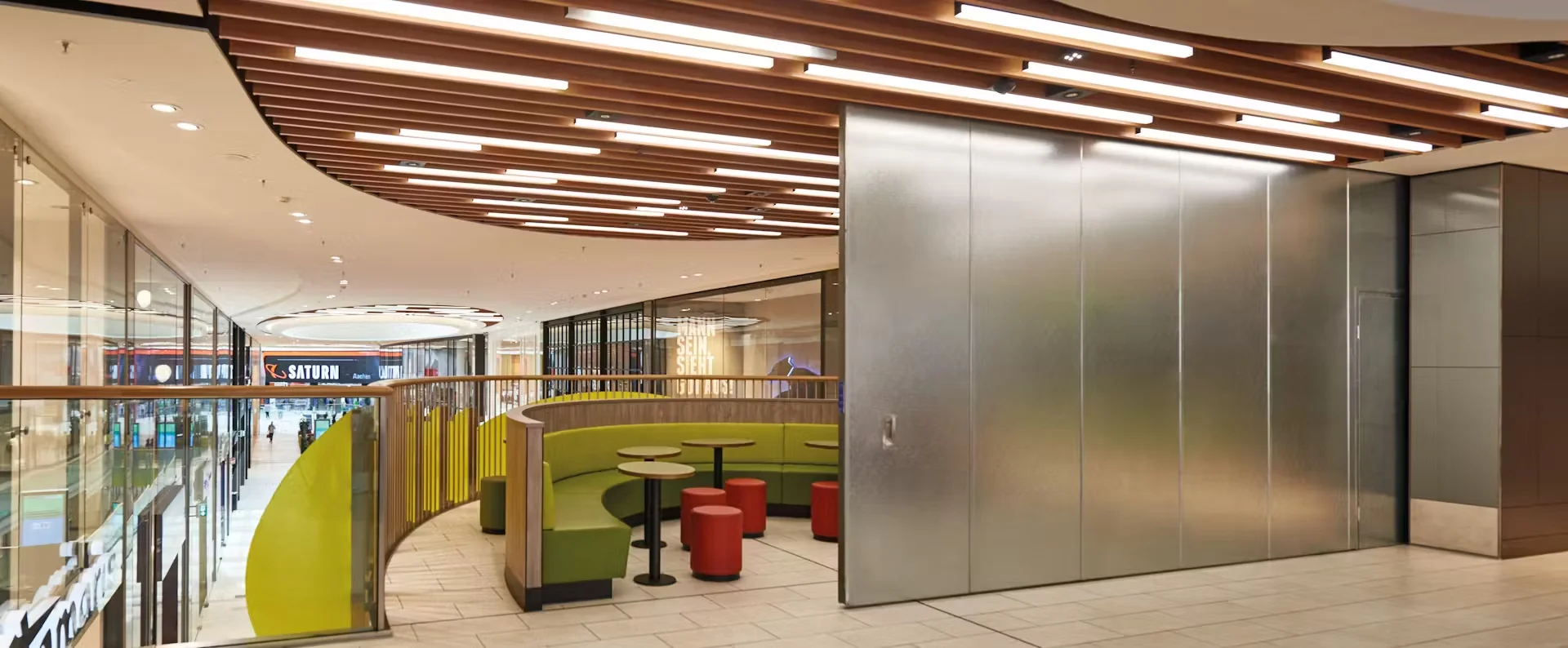 Certo. I modelli scorrevoli e le tende tagliafuoco Hörmann garantiscono resistenza al fuoco secondo le normative europee EI30–EI120.
